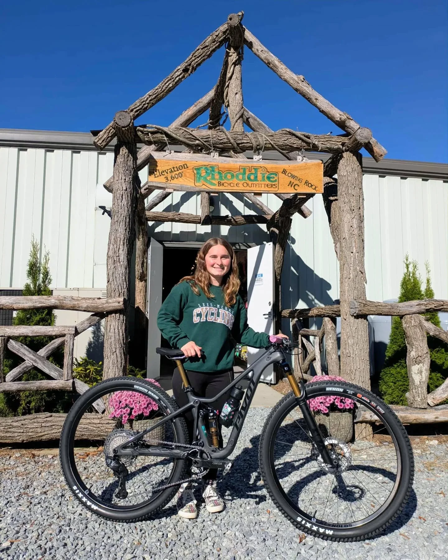 Rhoddie (roh-DEE) is named after one of the most iconic plants of the Appalachians, the Rhododendron. Whether you are blazing through Rhoddo tunnels on the trail or zipping past endless thickets along the Blue Ridge Parkway, there is no mistaking its beauty and the critical role it plays in the Appalachian ecosystem. We are passionate about experiencing all this incredible region has to offer via bike and our name pays homage to it!