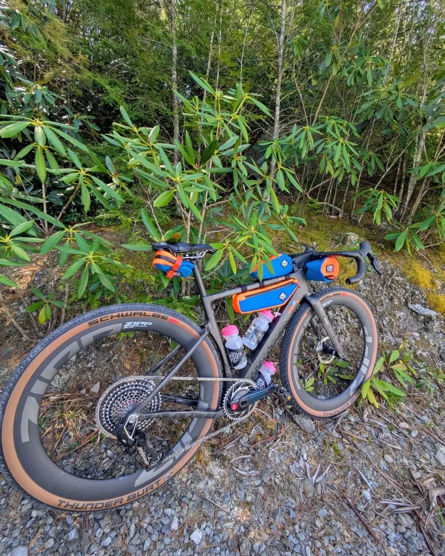 Rhoddie (roh-DEE) is named after one of the most iconic plants of the Appalachians, the Rhododendron. Whether you are blazing through Rhoddo tunnels on the trail or zipping past endless thickets along the Blue Ridge Parkway, there is no mistaking its beauty and the critical role it plays in the Appalachian ecosystem. We are passionate about experiencing all this incredible region has to offer via bike and our name pays homage to it!
